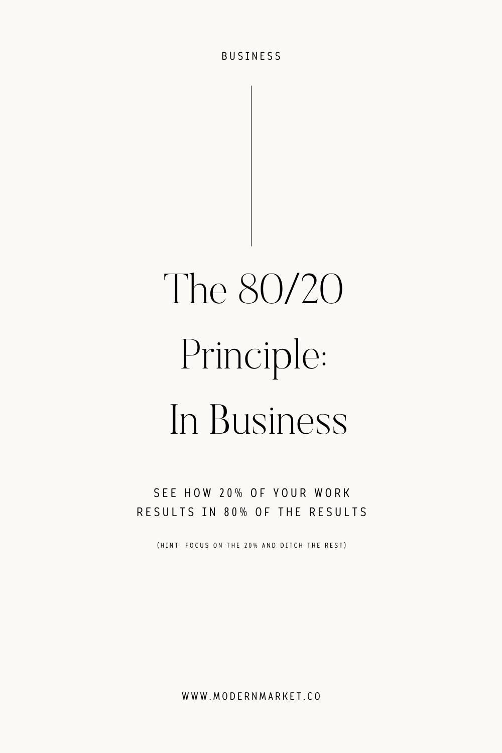 I remember reading about something called the 80/20 principle. It’s actually a really simple concept, but to me, it was absolutely mind-blowing. For the past few years, I have applied this 80/20 principle to running my own business and it has helped me in so many ways. It helps me make decisions quickly and always reminds me of the big picture.